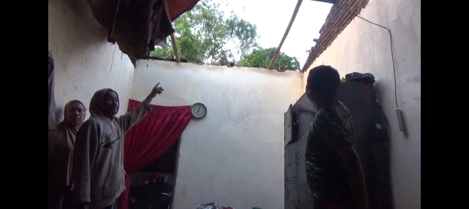 “Saya dan saudara sedang berada di dalam rumah beristirahat, tapi tiba-tiba hujan disertai petir dan angin kencang menghantam rumah kami dan langsung mengangkat atap rumah. Untung kami cepat menyelamatkan diri keluar rumah,” tutur Gebrianti.