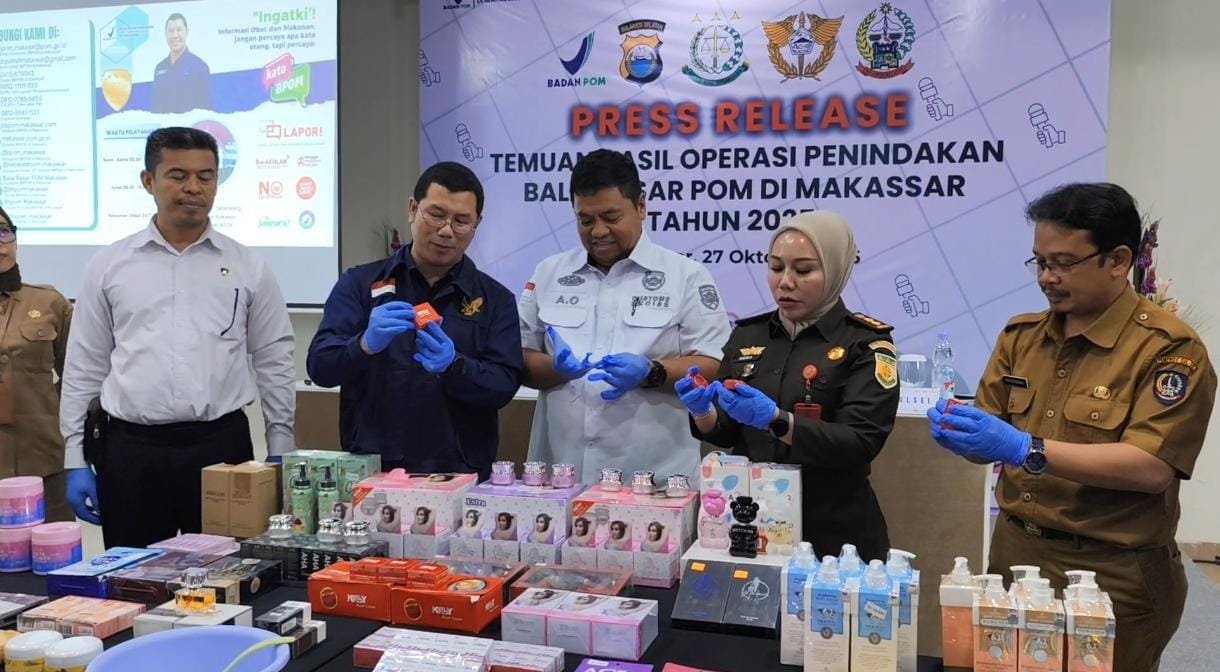 SULSELNEWS.NET — Balai Besar Pengawas Obat dan Makanan (BBPOM) di Makassar berhasil mengungkap peredaran kosmetik ilegal bernilai ratusan juta rupiah di Kabupaten Sidrap. Operasi dilakukan pada 16 Oktober 2025 sekitar pukul 20.00 WITA oleh PPNS BBPOM Makassar bersama Korwas PPNS Ditreskrimsus Polda Sulsel.