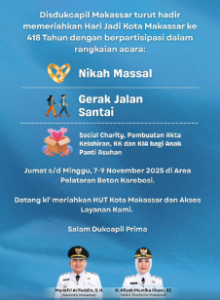 “Kami mengajak warga Makassar memanfaatkan layanan Adminduk di Karebosi. Ini upaya kolektif menuju tertib administrasi kependudukan dan pelayanan yang inklusif,” katanya.