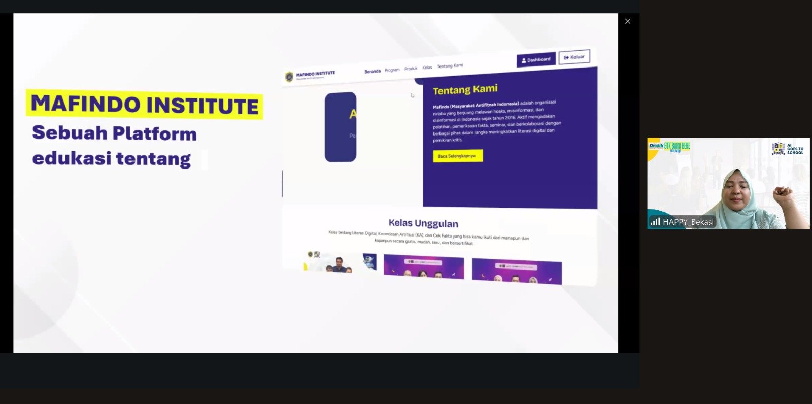 Koordinator Wilayah MAFINDO Bekasi, Budi Indaryadi, juga hadir dan menegaskan bahwa AI memiliki peran penting dalam memperkuat literasi digital di kalangan guru dan siswa.