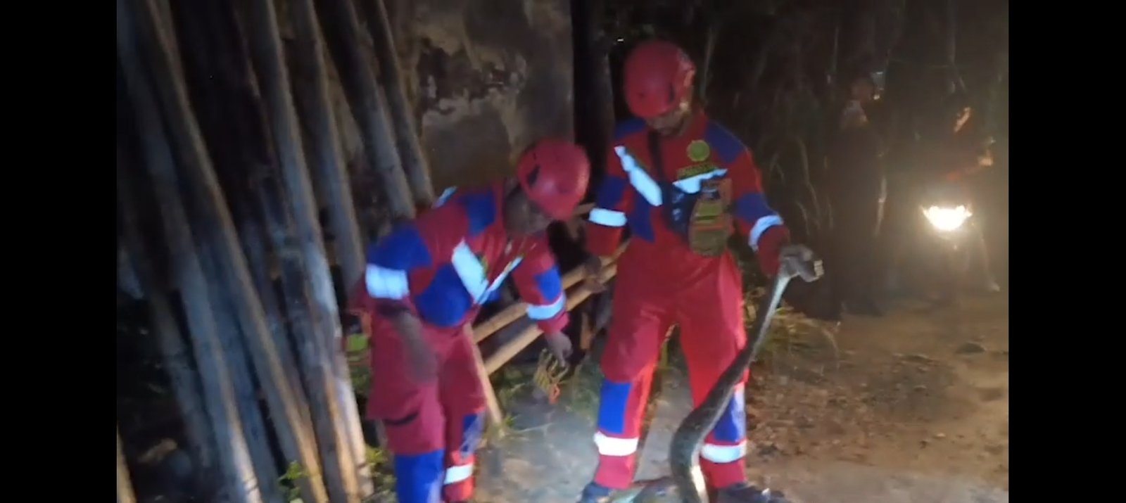 Menanggapi laporan tersebut, tim rescue Damkar Gowa bergerak cepat menuju lokasi untuk melakukan evakuasi. Proses penangkapan ular berlangsung cukup sulit lantaran dilakukan malam hari dan ular bersembunyi di bawah semak-semak yang lebat. Setelah hampir satu jam pencarian, petugas akhirnya berhasil menangkap hewan melata tersebut.