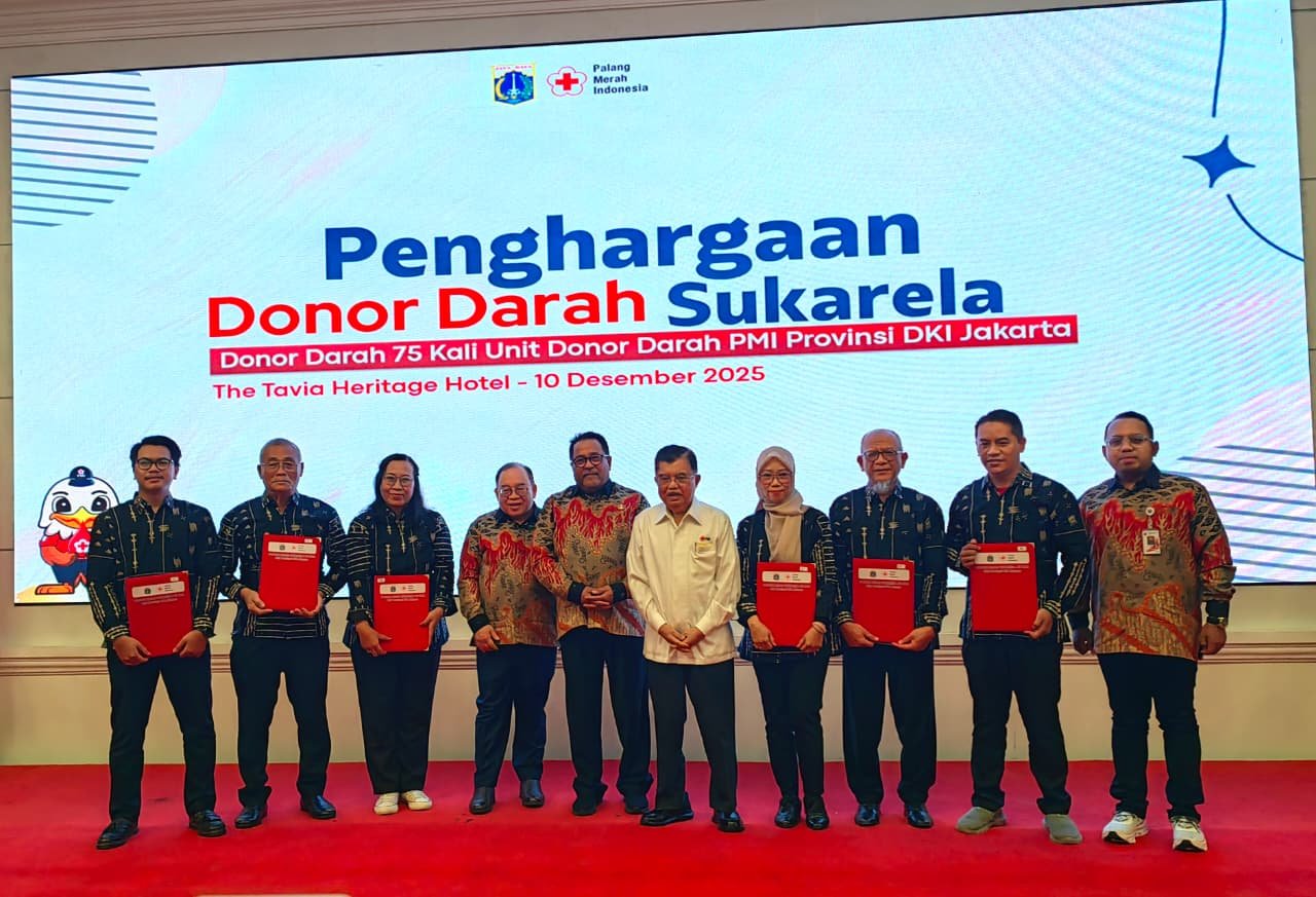 SULSELNEWS.NET— Ketua Umum Palang Merah Indonesia (PMI) Pusat Jusuf Kalla menyampaikan apresiasi kepada para pendonor darah sukarela dalam acara Penganugerahan Penghargaan Pendonor Sukarela 50 dan 75 Kali yang digelar PMI DKI Jakarta di Hotel Tavia, Jakarta, Rabu (10/12/2025).