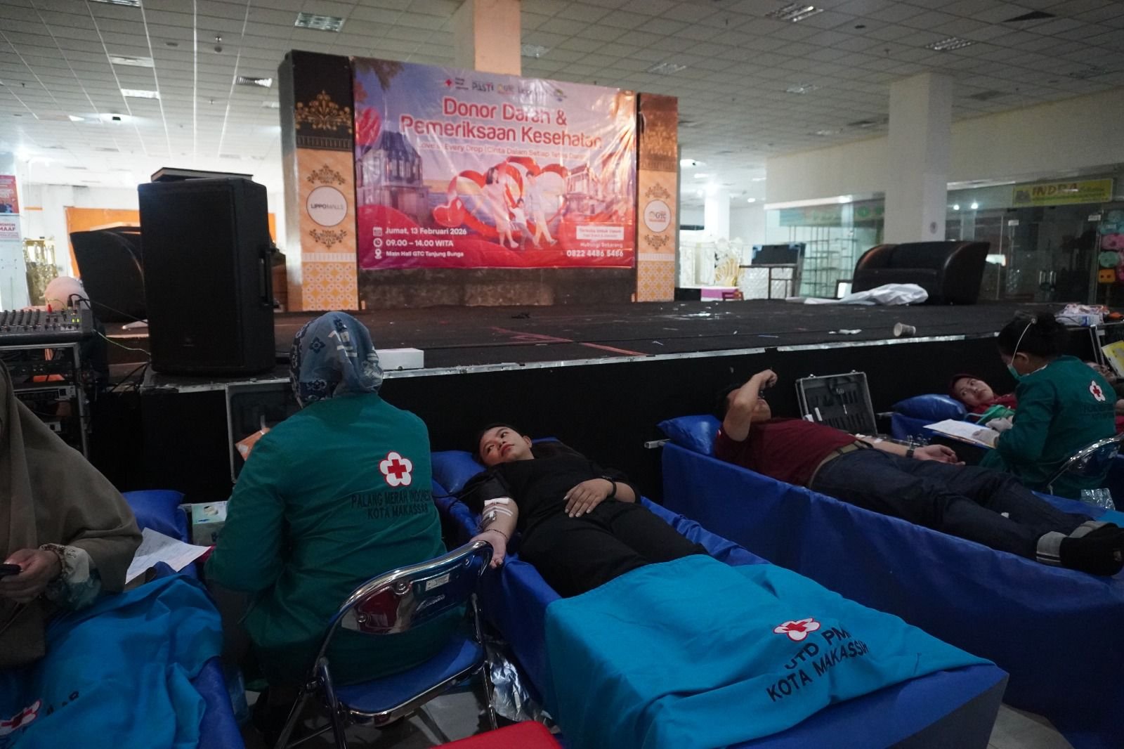 Kegiatan donor darah yang berlangsung di Main Hall Mall GTC, Jumat (13/2/2026), tersebut bekerja sama dengan PMI Kota Makassar dan Apotek K-24 Cendrawasih. Dari 125 pendaftar, kegiatan ini berhasil mengumpulkan 95 kantong darah.