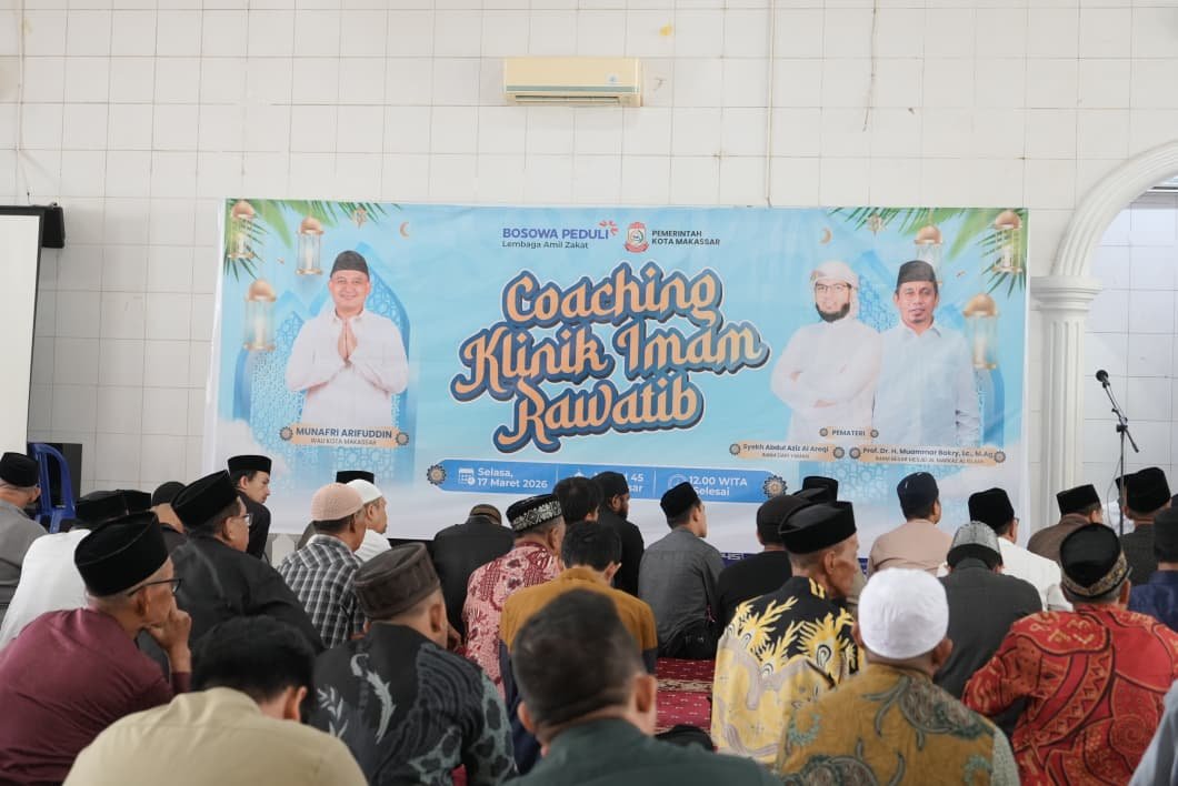 Sebagai bentuk keseriusan tersebut, Pemerintah Kota Makassar, melalui Bagian Kesejahteraan Rakyat bekerja sama dengan Bosowa Peduli menggelar kegiatan Coaching Clinic Imam Rawatib di Masjid Agung 45, Jalan Urip Sumoharjo, Selasa (17/3/2026).