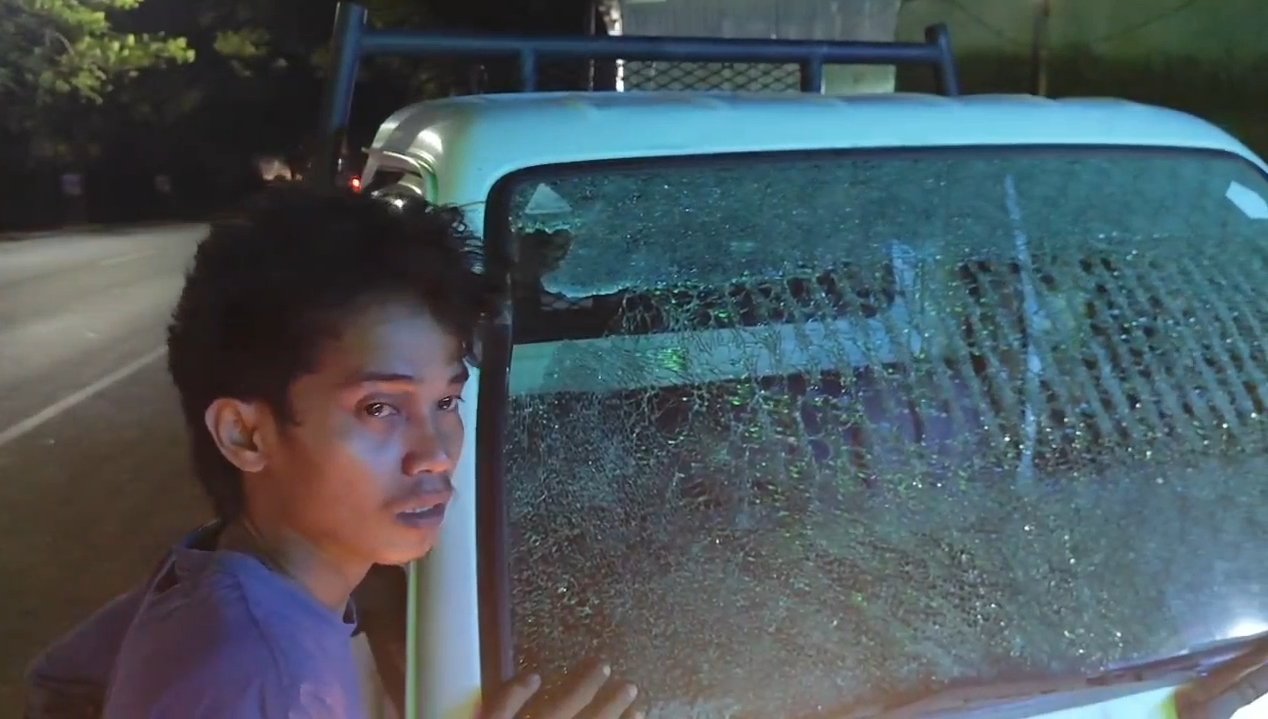 “Tiba-tiba ada yang lempar batu, kaca depan langsung pecah. Anak kami hampir kena, bahkan sempat kena serpihan kaca,” ujar Abdul Rahim Ismar, korban pelemparan.