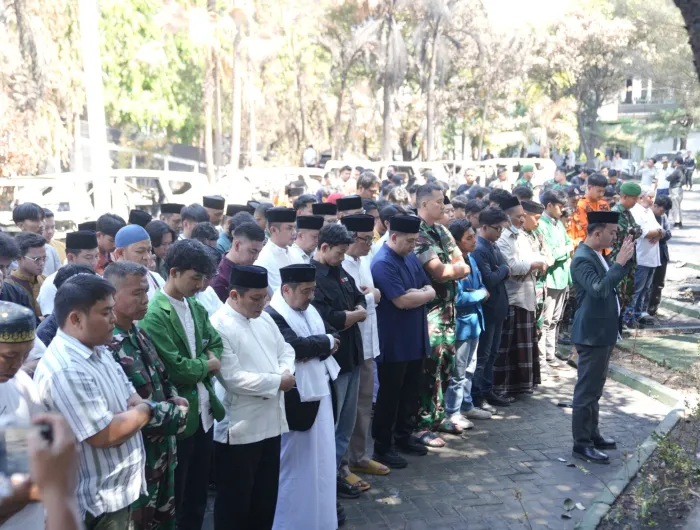 Wali Kota Makassar, Munafri Arifuddin, bersama jajaran SKPD, Forkopimda, Dandidm, Kejari, anggota DPRD, hingga mahasiswa dari Badan Eksekutif Mahasiswa se-Kota Makassar, berdiri dalam satu saf, menyatukan doa dan harapan.