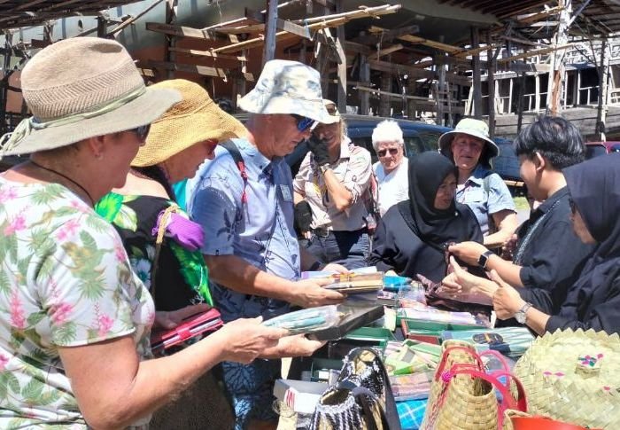 Sebelum kembali ke kapal MV Coral Geographer pada pukul 12.00 WITA, para wisatawan menyempatkan diri berinteraksi dengan warga dan membeli berbagai oleh-oleh khas yang dijajakan masyarakat setempat sebagai buah tangan.