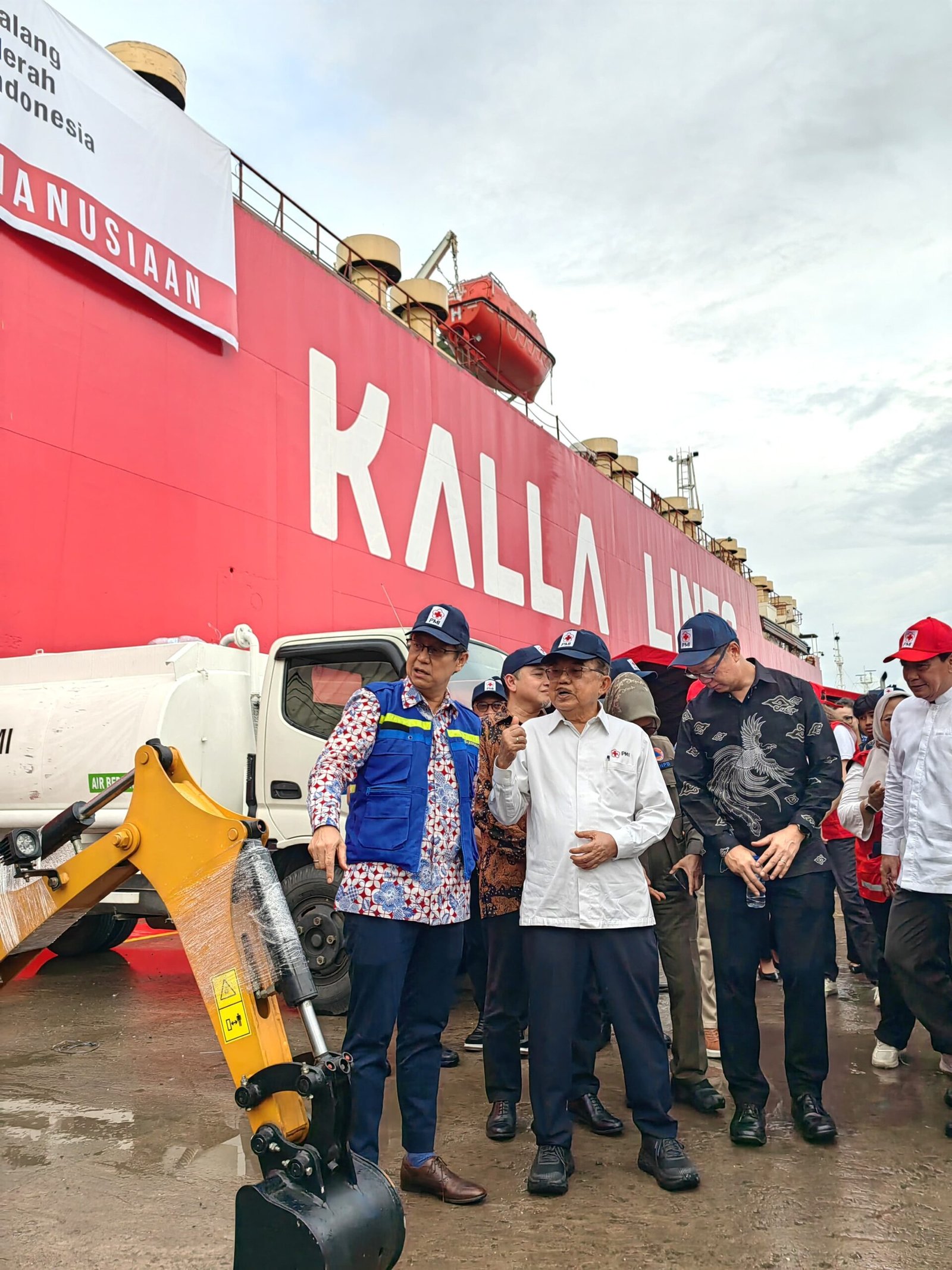 Jusuf Kalla menjelaskan, kapal yang diberangkatkan merupakan kapal terbesar milik PMI dengan kapasitas hingga 700 truk kendaraan Dalam pengiriman kali ini, PMI mengangkut lebih dari 2500 ton peralatan dan logistik, termasuk sekitar 60 unit alat berat seperti ekskavator, kendaraan besar dan kecil, serta peralatan kebersihan rumah tangga.