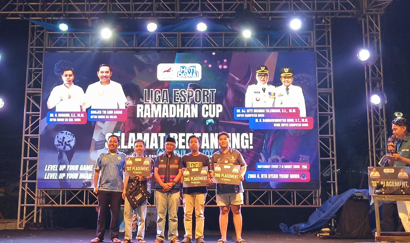 SULSELNEWS.NET — Esports Indonesia (ESI) Kabupaten Gowa menggelar kompetisi esports di Ruang Terbuka Hijau (RTH) Syekh Yusuf, Jalan Masjid Raya, Kecamatan Somba Opu, Kabupaten Gowa, Sulawesi Selatan, Sabtu–Minggu (7–8/3/2026) malam.