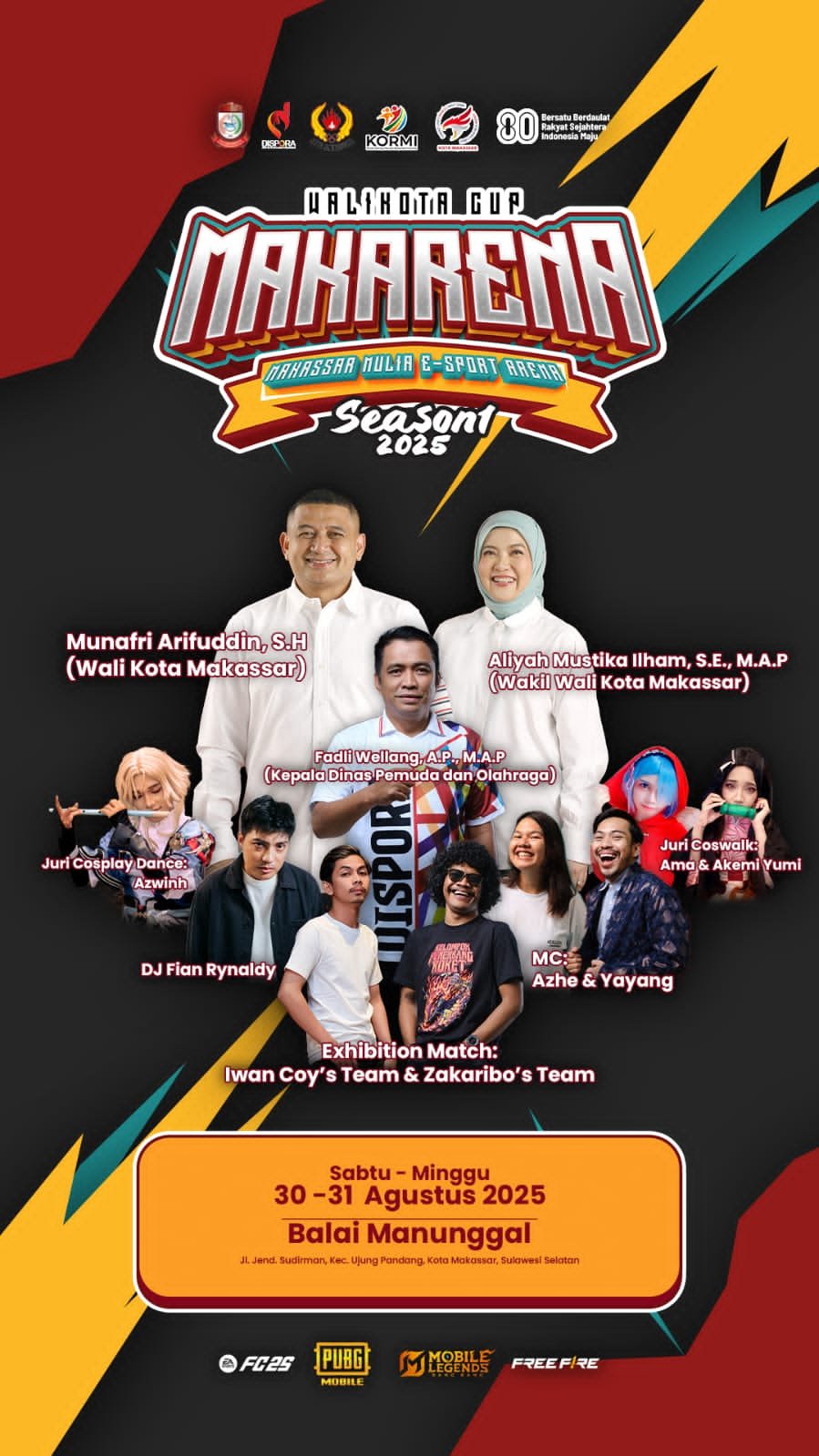SULSELNEWS.NET – Dinas Pemuda dan Olahraga (Dispora) Kota Makassar mengelar Walikota Cup Makarena atau Makassar Mulia E-Sport Arena Season 1 2025. Kegiatan ini melibatkan 1000+ peserta yang akan ikut berkompetisi.